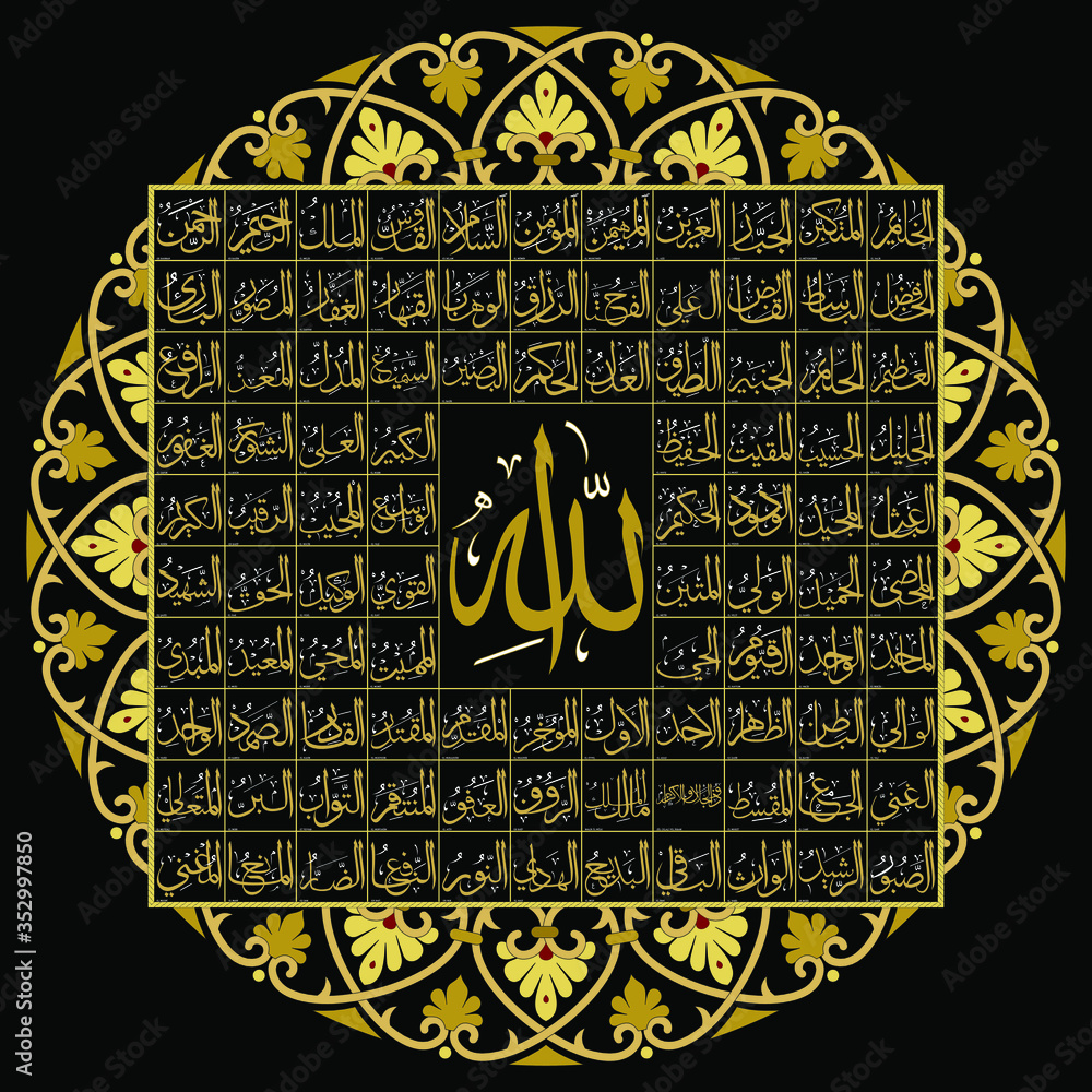 99 Names Allah Asmaul Husna Black Stock Vector Royalty Free 1296823495 from image.shutterstock.com Dalam al qur'an, istilah asmaul husna disebut empat kali yakni dalam surat al a'raf ayat 180. Dalam islam, asmaul husna adalah sembilan puluh sembilan (99) asma (nama) allah swt yang terbaik. Seperti yang telah dibahas sebelumnya bahwa asmaul husna memiliki 99 bacaan. Asmaul husna (allohning 99 go'zal ismlari). Assalamu'alaikum wr.wb this islamic pro app is completely offline and free to download. Асмаул хусна (аллохнинг 99 гузал исмлари). Jadikanlah tujuanmu untuk lebih mengenal tuhanmu dan mengharapkan ridha_nya | bagian dari @komunitasaci. 99 asmaulhusna new 2021 runa & syakira ( official music video ).